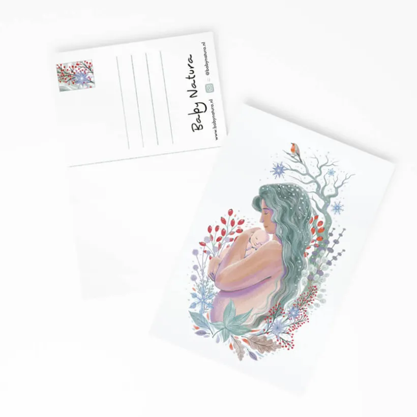 Deze prachtige duurzame ansichtkaart van een moeder met baby in winter sferen werd tijdens de winter 2021/2022 gratis geleverd bij een bestelling. Deze kaart komt niet meer terug als toevoeging bij een bestelling waardoor het een ware collectors item is!