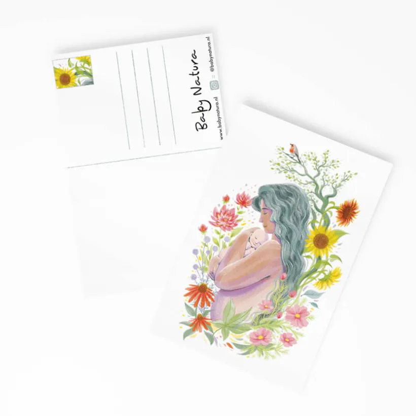 Deze prachtige duurzame ansichtkaart van een moeder met baby in zomer sferen werd tijdens de zomer 2022 gratis geleverd bij een bestelling.