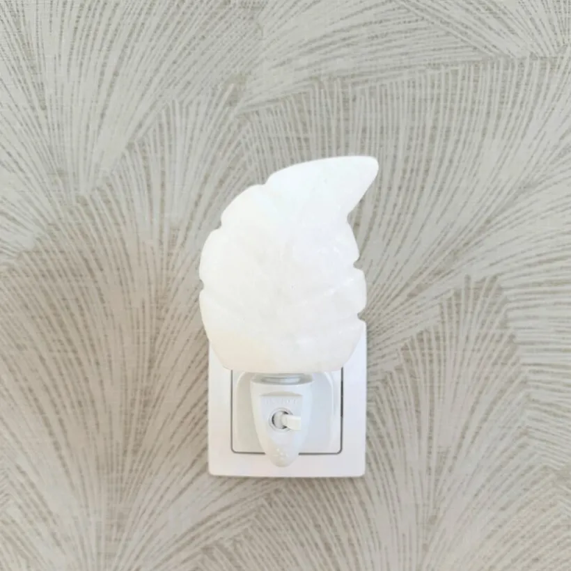 Dit prachtige Himalayazout nachtlampje blad wit, draagt bij aan een gezonde atmosfeer in de babykamer.