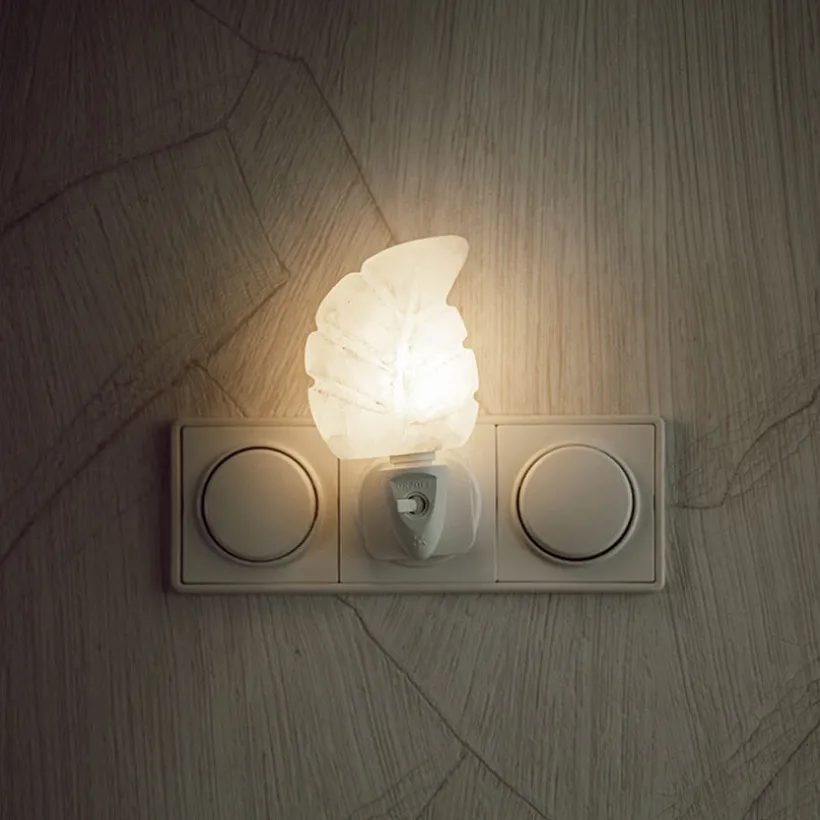 Het Himalayazout nachtlampje blad wit geeft een frisse gloed. Deze bladlamp is echt een pracht op elke slaapkamer.