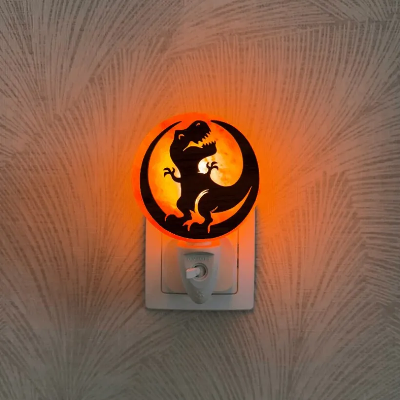 Dit prachtige Himalayazout nachtlampje Dinosaurus 3D, draagt bij aan een gezonde atmosfeer in de slaapkamer.