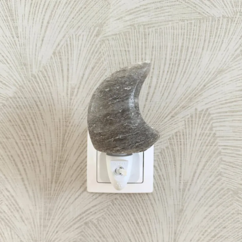 Dit prachtige Himalayazout nachtlampje maan grijs, draagt bij aan een gezonde atmosfeer in de babykamer.