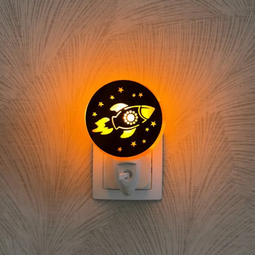 Dit prachtige Himalayazout nachtlampje Raket 3D, draagt bij aan een gezonde atmosfeer in de slaapkamer.