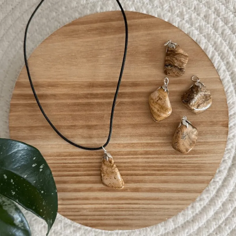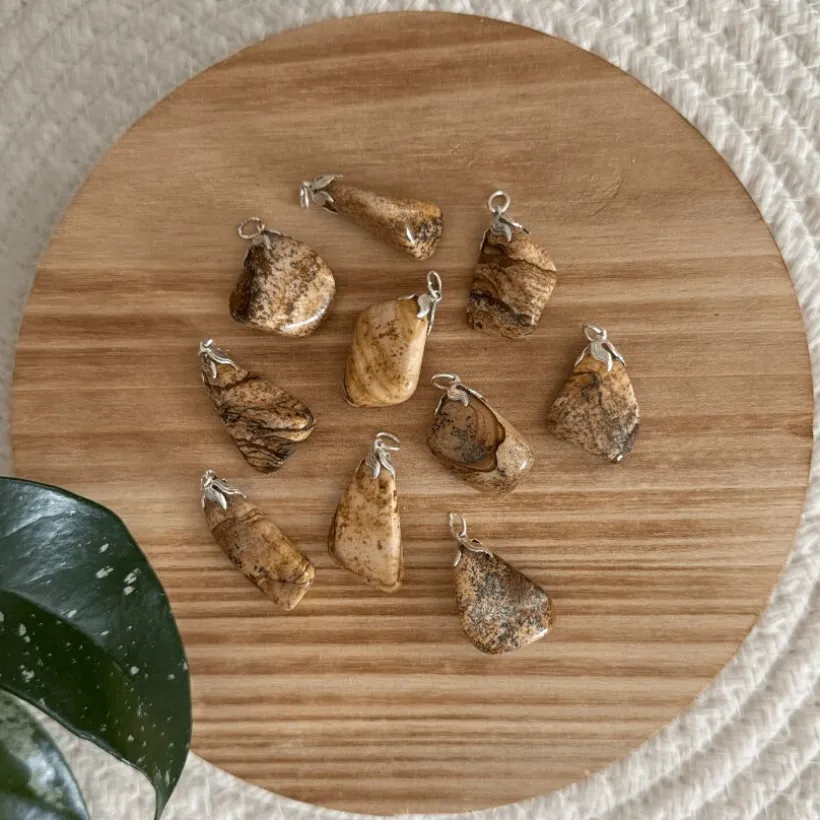 Beschrijving van Baby Natura Landschapsjaspis edelsteen hanger – Stabiliteit & Creativiteit