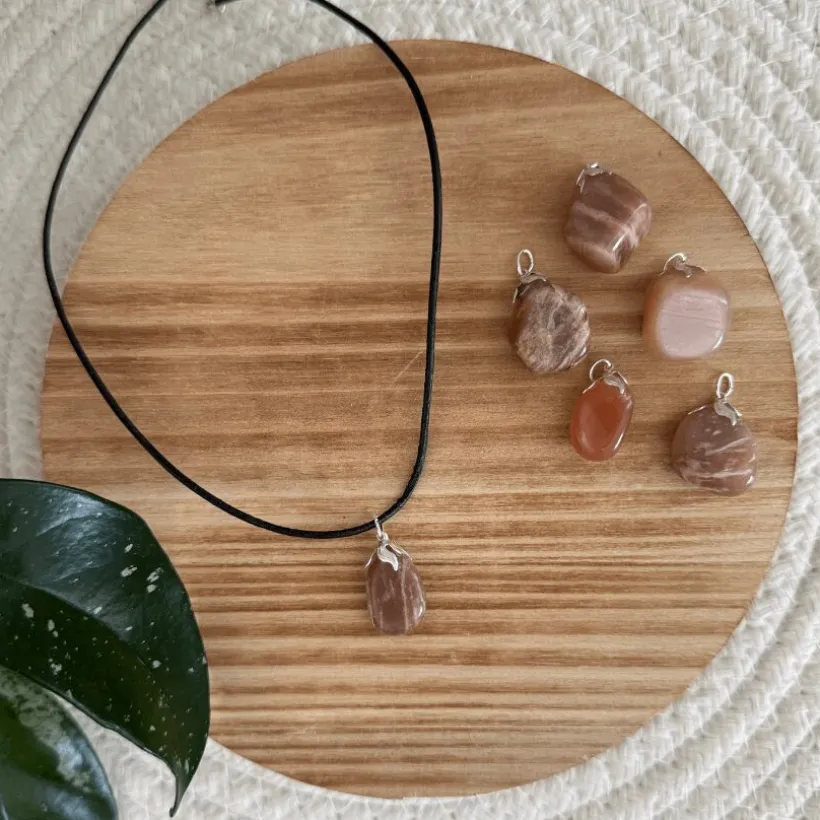 Beschrijving van Baby Natura Perzik Maansteen edelsteen hanger – Vrouwelijke Kracht & Intuïtie