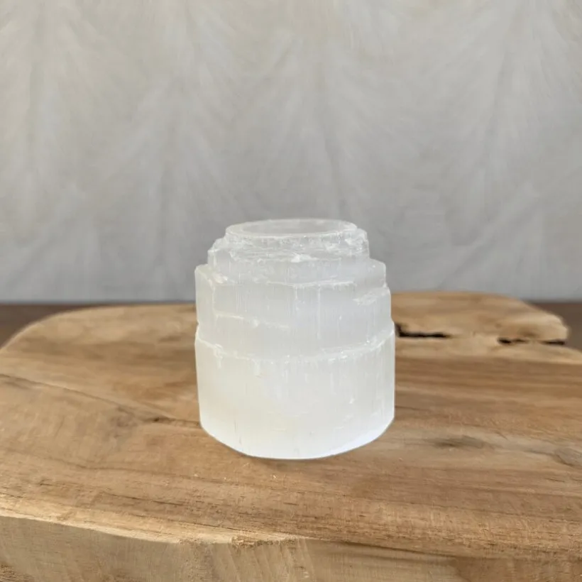 Prachtige seleniet theelichthouder uit ruwe seleniet. Seleniet wordt ook wel Engelensteen genoemd.