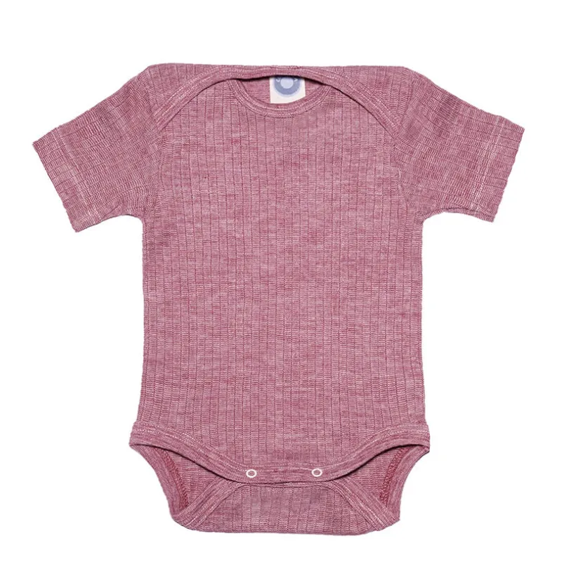 Beschrijving van Cosilana Romper wol zijde katoen wijnrood korte mouw