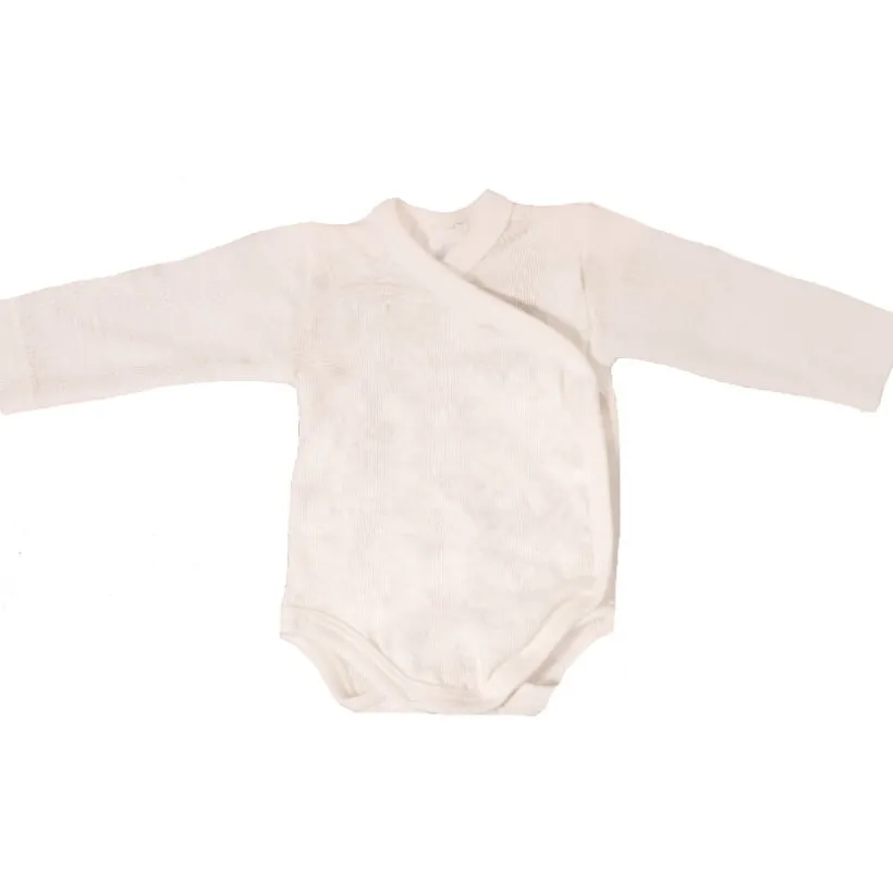 Wol-zijde rompertje van 70% biologische Merino scheerwol en 30% zijde.