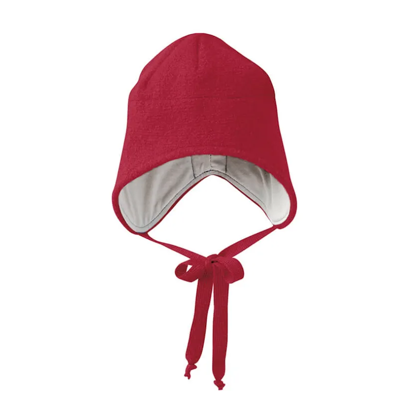 Heerlijk warm Disana strikmutsje gemaakt van gekookte wol.