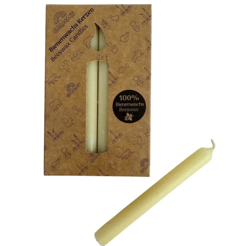 12 Bijenwas (100%) jaarring kaarsjes creme. Gecombineerd met de messing kaarshouder passen deze 100% bijenwaskaarsjes in de jaarring van Grimm’s en onze andere stekerhouders. Bijenwaskaarsjes zijn een fijne toevoeging op je seizoenstafel, zowel bij viering als herdenking.