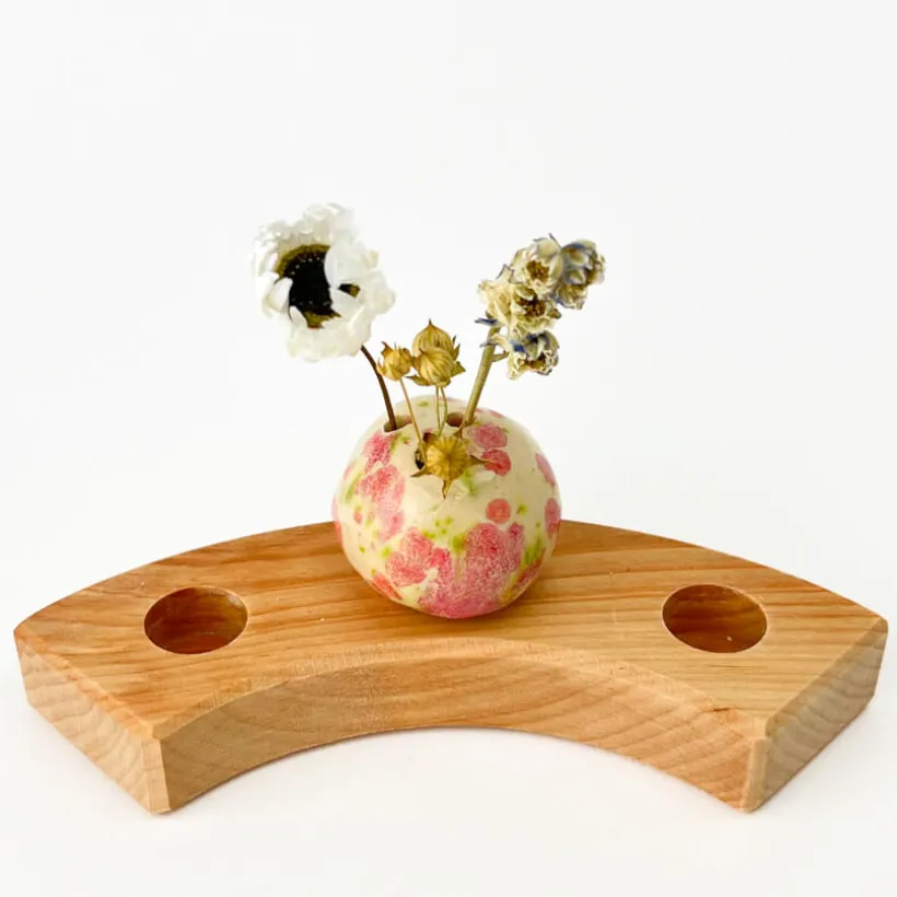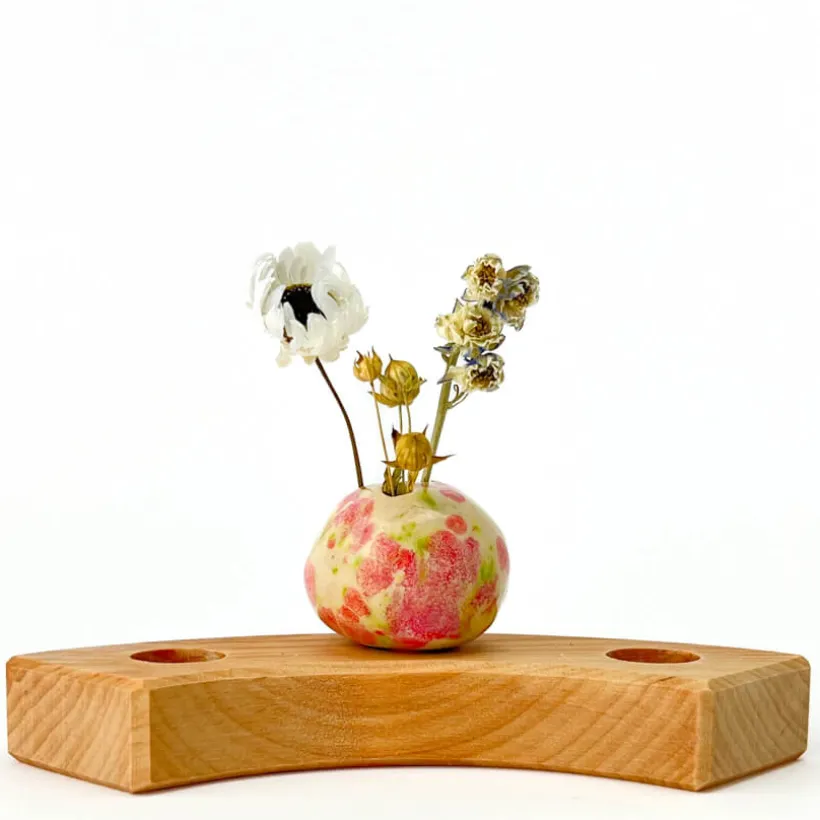 Klein dappertje Bolvaasje wit met roze en groen steker