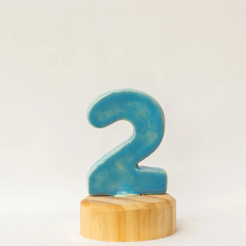 Blauwe keramieken steker getal 2. Leuk voor verjaardagen en jubliea! Uiteraard te combineren met onze andere cijfer stekers (0-9)