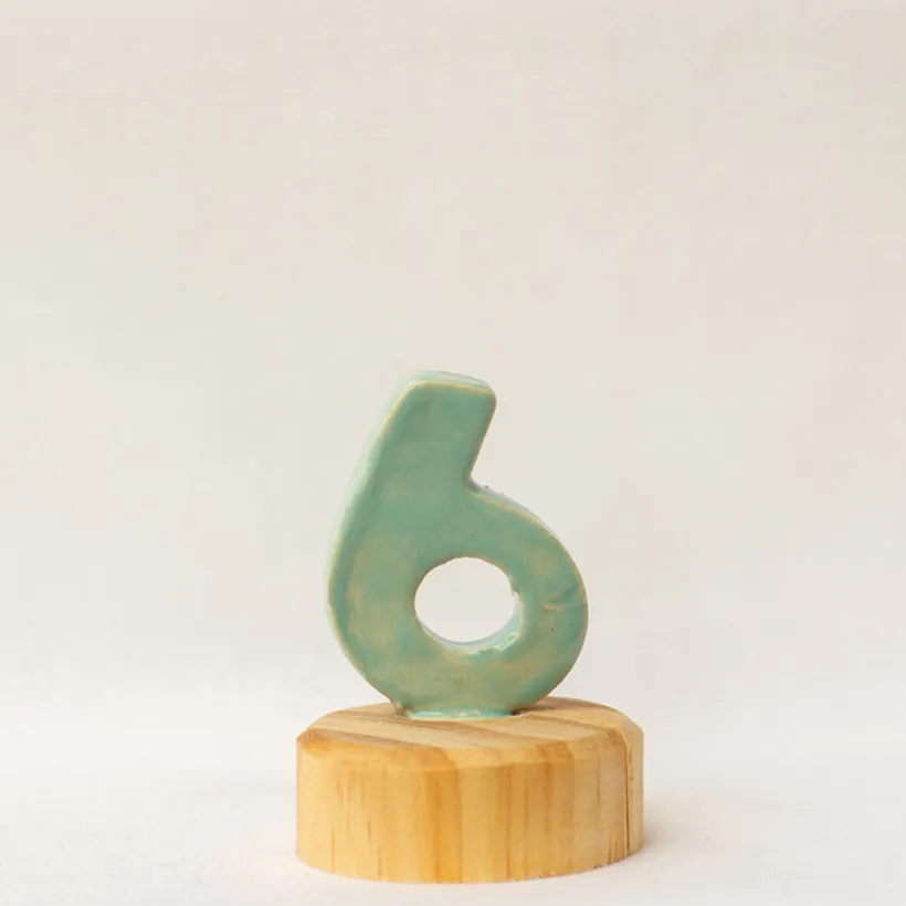 Licht groene keramieken steker getal 6. Leuk voor verjaardagen en jubliea! Uiteraard te combineren met onze andere cijfer stekers (0-9)