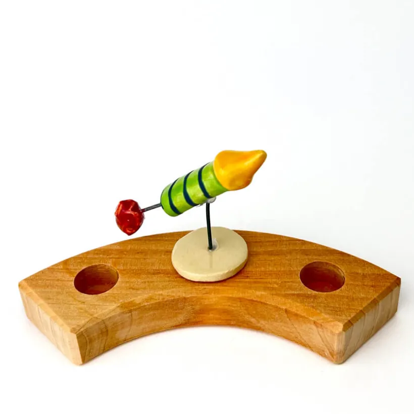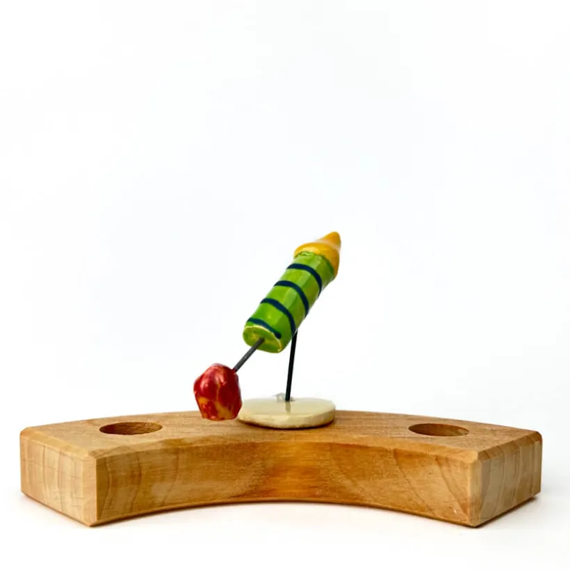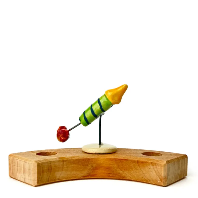 Knallend het nieuw jaar in met deze leuke vuurpijl voor op je seizoenstafel of jaarring. Ook leuk in combinatie met onze oliebollen-steker. Deze gele vuurpijl heeft een gele kop en is ook in het geel met blauwe kop verkrijgbaar. Fijne jaarwisseling!