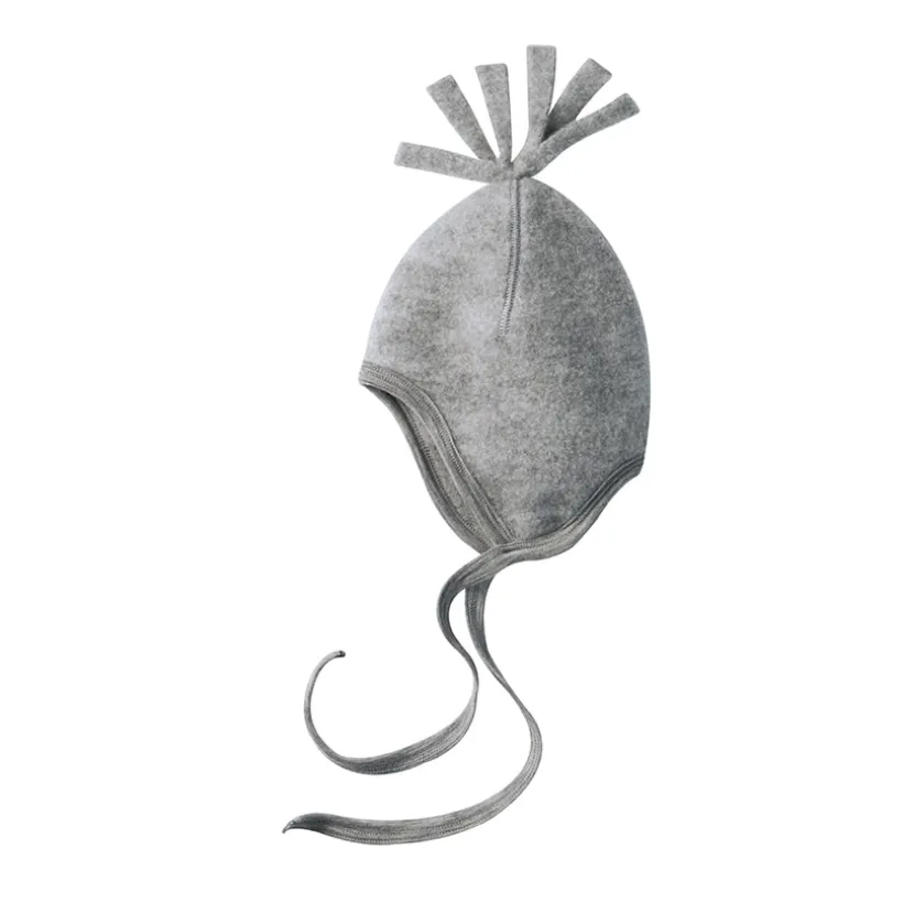 Beschrijving van Engel Natur Strikmutsje wolfleece grijs