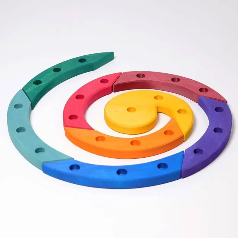 Grimm’s gekleurde houten verjaardag en adventspiraal. Spiraal voor kaarsen, voor de adventstijd of voor verjaardagen. De elementen van Grimms Verjaardags- en Adventsspiraal kunnen als een spiraal of afzonderlijk of in een rij als een golvende lijn worden geplaatst.